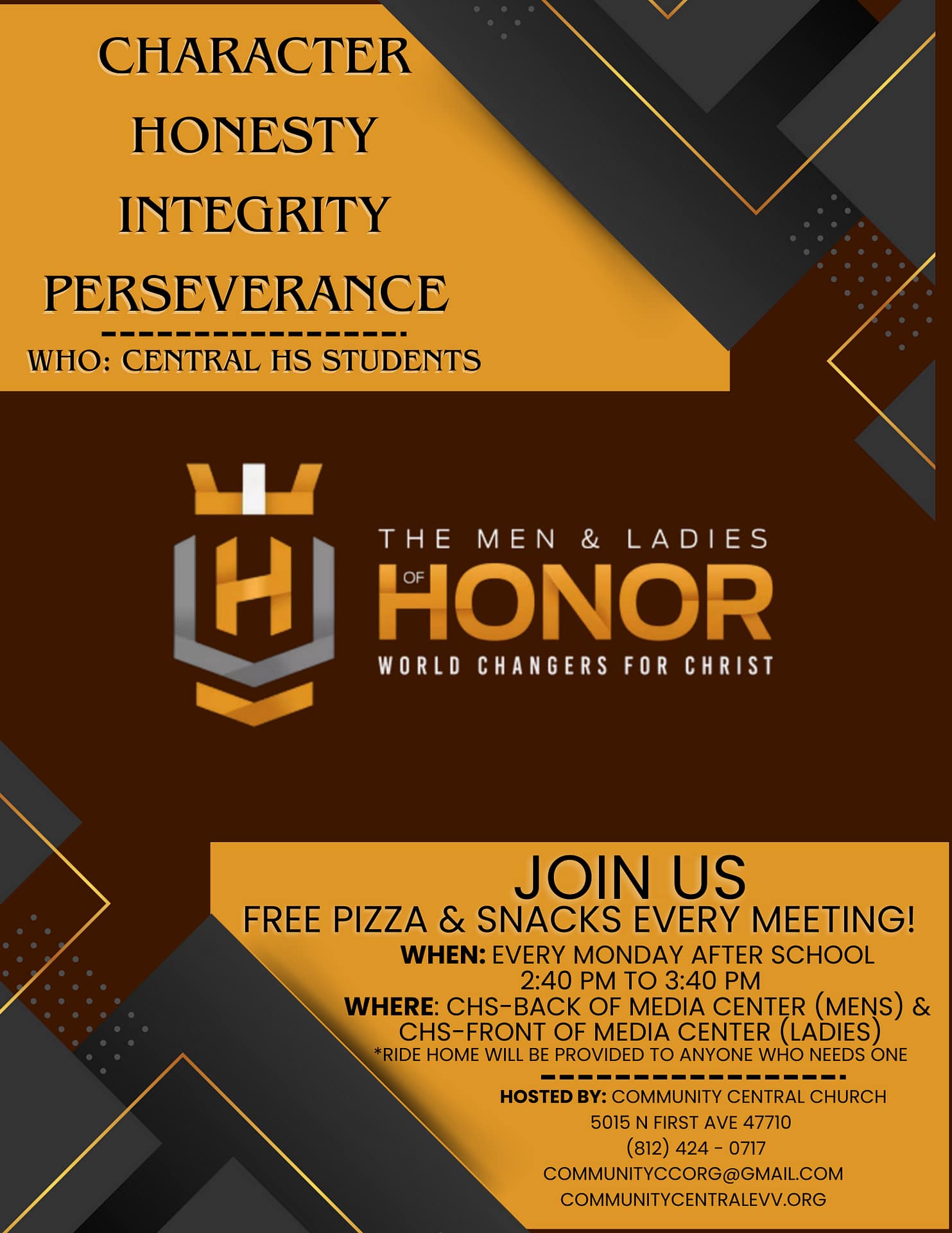Every Monday, after school, a group of men and women, from Community Central, help share the gospel and change lives for the students at Central High school in Evansville, IN. Our goal is to help these students develop into honorable men and ladies in Christ and change the world. For more information on how to help, or to get involved, please see Pastor Brian.