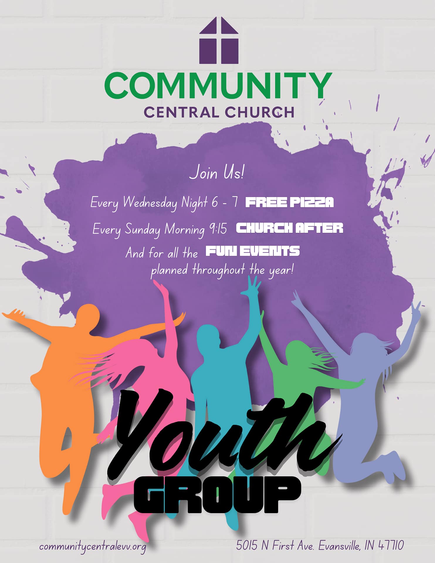 The youth group, Community Central Youth (CCY) , for teens in grades 6 -12 meets at 9:30 a.m. on Sunday and 6 to 7 pm on Wednesday nights. They also have fellowshipping events throughout the year.